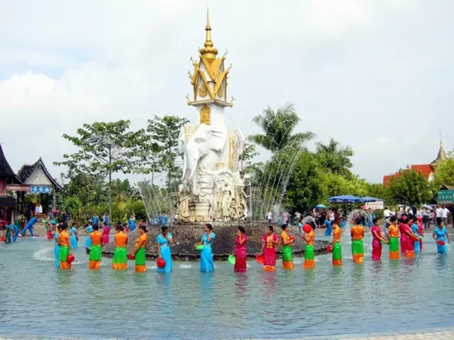 傣族園最核心的遊玩體驗就是參與萬人潑水活動了,我們去的那天下午到達的景區,當天下午就有 3 場潑水活動,差不多每隔一個小時就有一場。