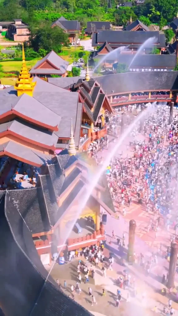 早期的潑水活動主要在村寨的佛寺周邊或瀾滄江畔進行,隨著時間的推移,逐漸形成了固定的場地與儀式流程。傣族園所在的橄欖壩,曾是古代傣王的禦花園,這裡的曼春滿佛寺、曼聽佛寺已有千年曆史,是南傳上座部佛教在西雙版納的重要傳承地。20世紀末,傣族園景區規劃建設時,將潑水廣場作為核心景點進行打造,不僅保留了傳統潑水儀式的核心環節,還優化了場地設施,使這一古老民俗得以更好地傳承與推廣。如今,傣族園潑水廣場已成為西雙版納潑水文化的標誌性場地,每年吸引數百萬遊客前來體驗。