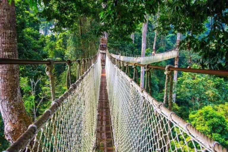 1. 安全方面:景區內為熱帶雨林環境,路面潮濕,容易滑倒,遊客行走時需注意腳下安全,尤其是在高空棧道和徒步線上;避免擅自離開遊覽路線,以免迷路或遭遇野生動物襲擊;若遇到雷雨天氣,需及時躲到室內或安全的避雨處,避免在樹下避雨;乘船遊覽時,需穿好救生衣,遵守船員的指揮,不得在船上嬉戲打鬧。