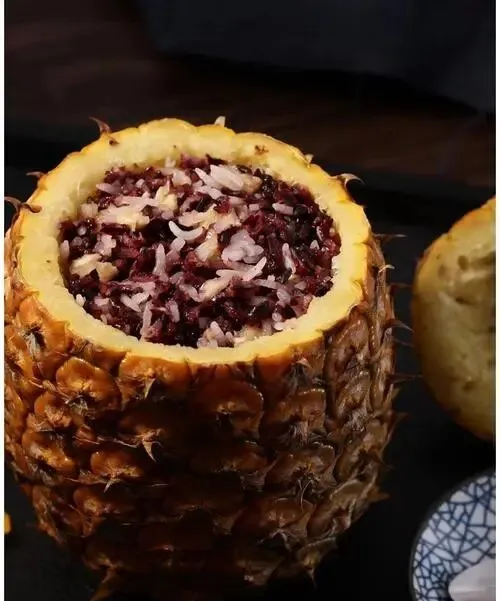 主食類中,糯米製品占據半壁江山。傣家糯米饭顆粒飽滿、軟糯彈牙,不僅是餐桌上的主角,更是搭配各類菜肴的靈魂。菠蘿紫米飯頗具代表性,將新鮮菠蘿挖空,填入糯米、紫米、花生、芝麻等食材蒸熟,菠蘿的果酸中和了糯米的甜膩,果香與米香交織,口感清甜軟糯,既是主食也是甜品。竹筒飯則是另一種風味,新鮮竹筒作為容器,放入糯米與肉丁、花生等,經炭火烤制後,竹香滲入米中,打開竹筒時香氣撲鼻,嚼起來齒頰留香。