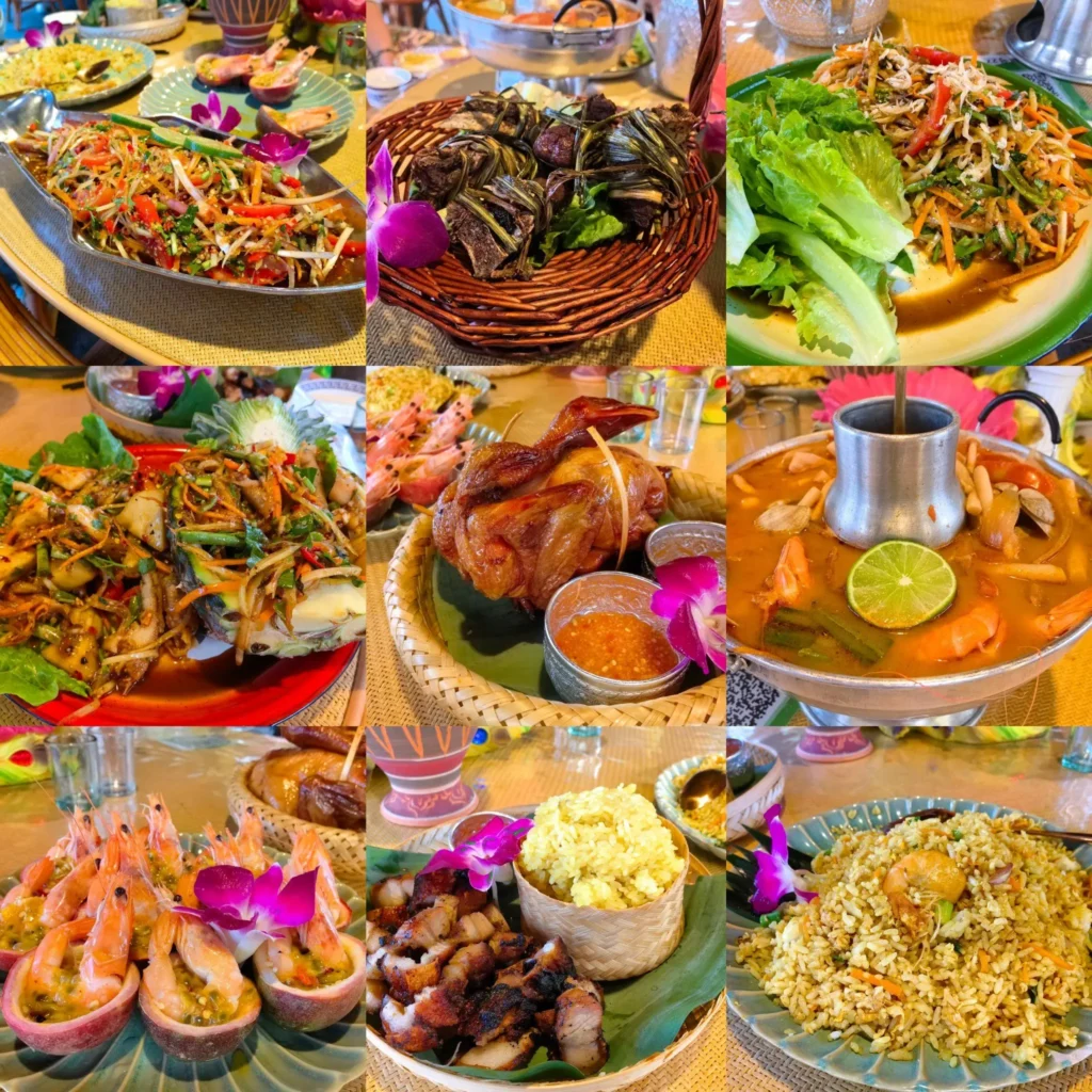 - 晚餐:在傣族園附近的正宗傣味餐館,品嘗傣味手抓飯。點一份多人份的手抓飯,包含香茅草烤鸡、烤鱼、喃咪拼盤、酸笋炒肉、糯米饭等菜品,圍坐在一起用手抓食,體驗地道的傣家聚餐文化。餐後搭配一杯老撾冰咖啡,解膩又提神。